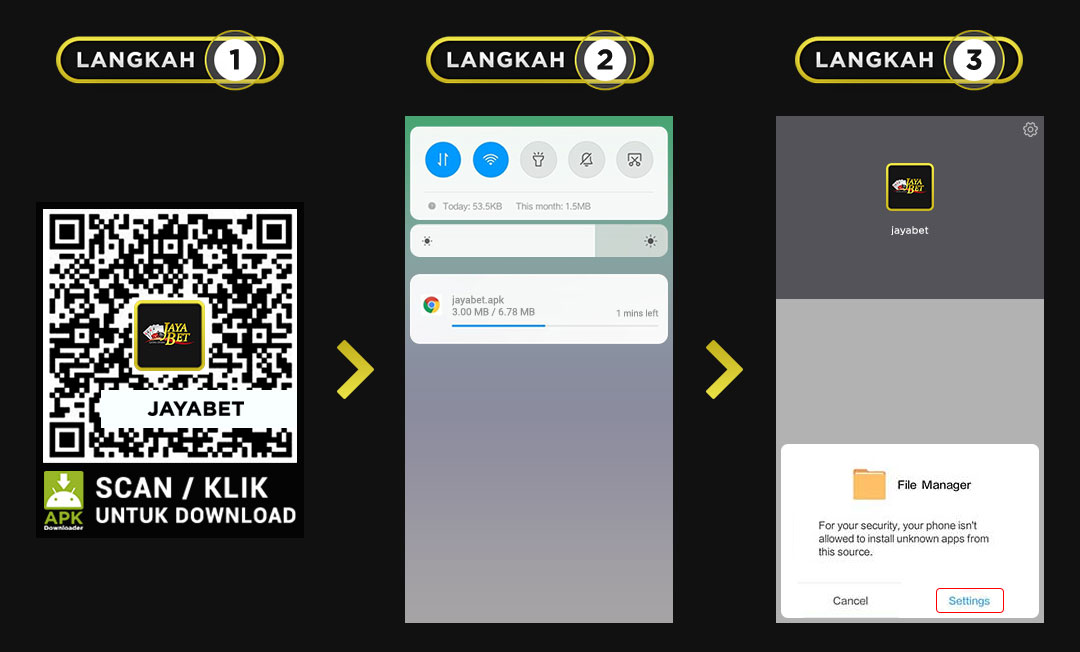 Berikut ini adalah cara download aplikasi android JAYABET pada handphone android anda :